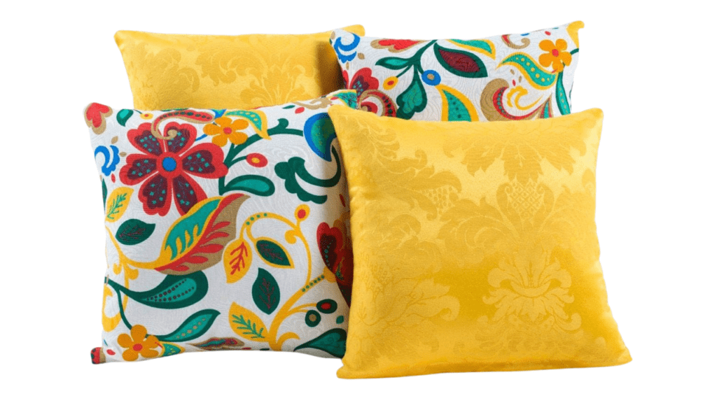 - Almofadas de Tecido: São as mais comuns e versáteis. Podem ser feitas de diversos tipos de tecidos, como algodão, linho, veludo, seda, entre outros. São ideais para adicionar conforto e estilo a diferentes ambientes.
