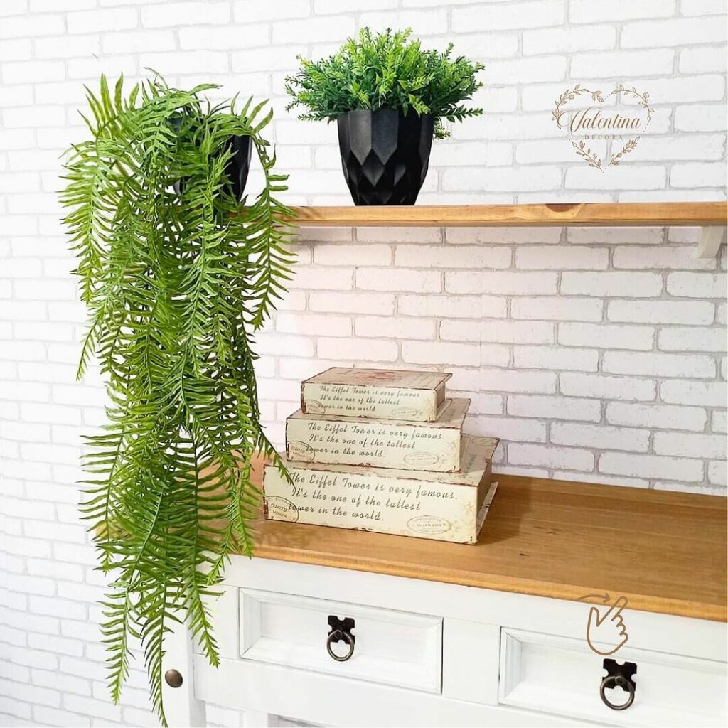 - Escolha plantas artificiais de tamanhos e texturas diferentes para criar um visual mais interessante.