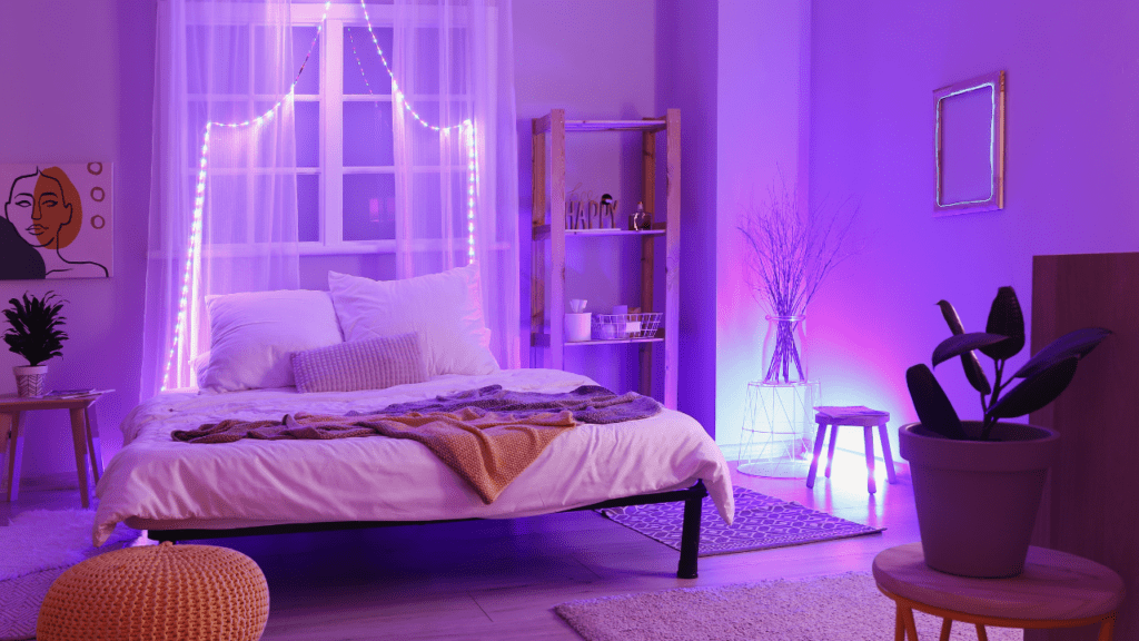 Luzes amareladas ou brancas quentes criam uma atmosfera aconchegante e relaxante, ideal para o quarto. Evite luzes brancas frias, que podem ser estimulantes e prejudicar o sono.